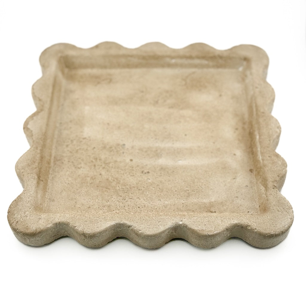 De Tova Tray is een stijlvol vierkant dienblad van aardewerk in een zachte beige tint met speelse rondingen aan de zijkant. De subtiele, natuurlijke kleur en het minimalistische ontwerp maken dit item perfect voor een Scandinavisch geïnspireerde setting.